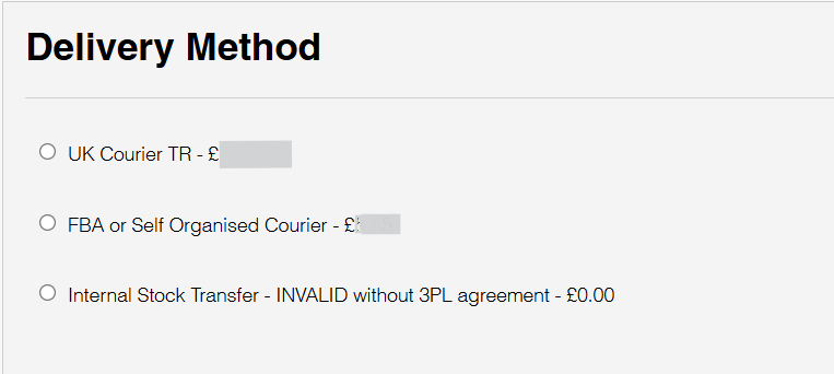Your shipping options will appear showing the relevant pricing for the size of your order